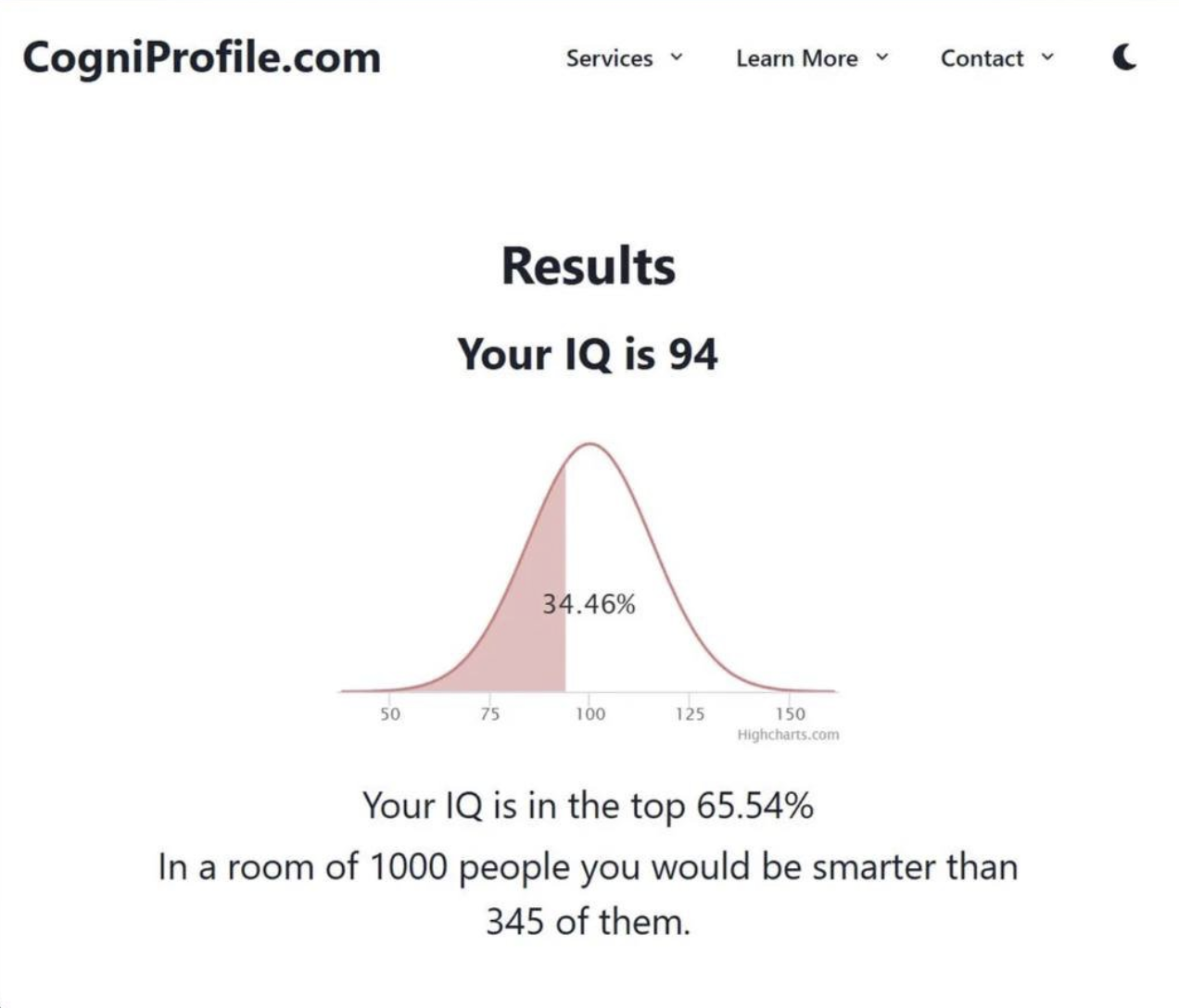Maybe it should just say “this means your intelligence is below average”. I genuinely think someone with <80 IQ would have a very low chance of understanding the text as presented in the screenshot.